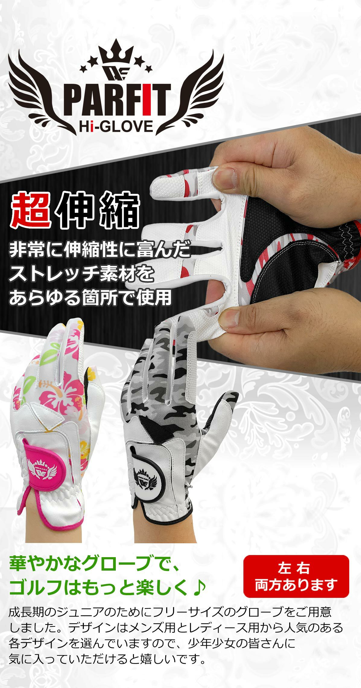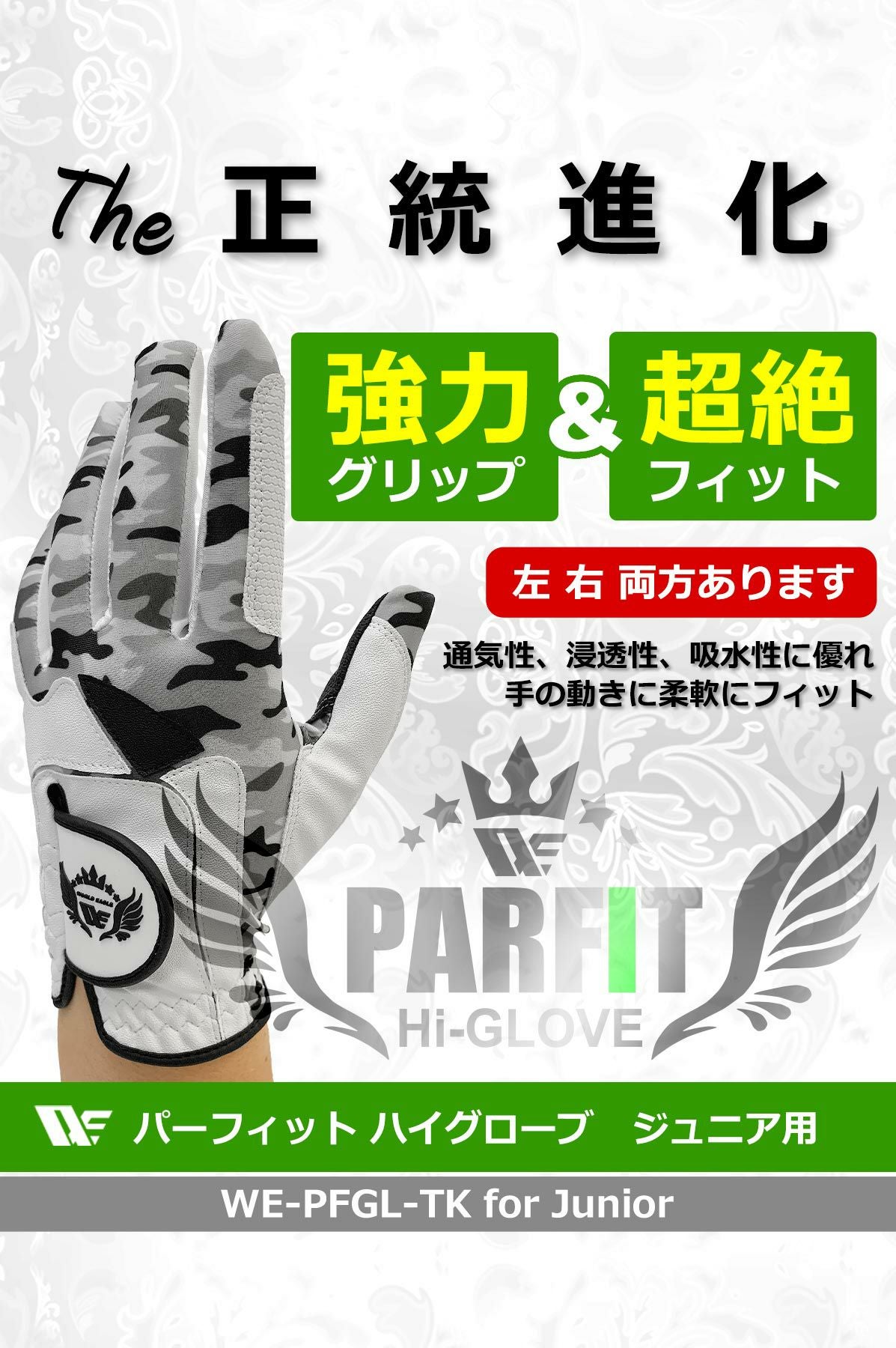 ワールドイーグル ゴルフ ジュニア グローブ 2カラー! 強力グリップ 超絶フィット 左用 右用 子供用 ゴルフ初心者にもおすすめ 15cm 16cm 17cm