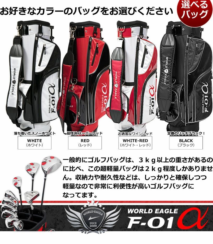 ワールドイーグル F-01 メンズ 13点(10本)クラブセット 選べる軽量スタンドバッグ付 右用 左用