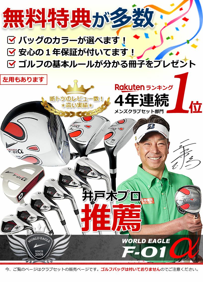 キャディバッグ付き ワールドイーグル F-01 メンズ13点セット 左 井戸木プロ推薦