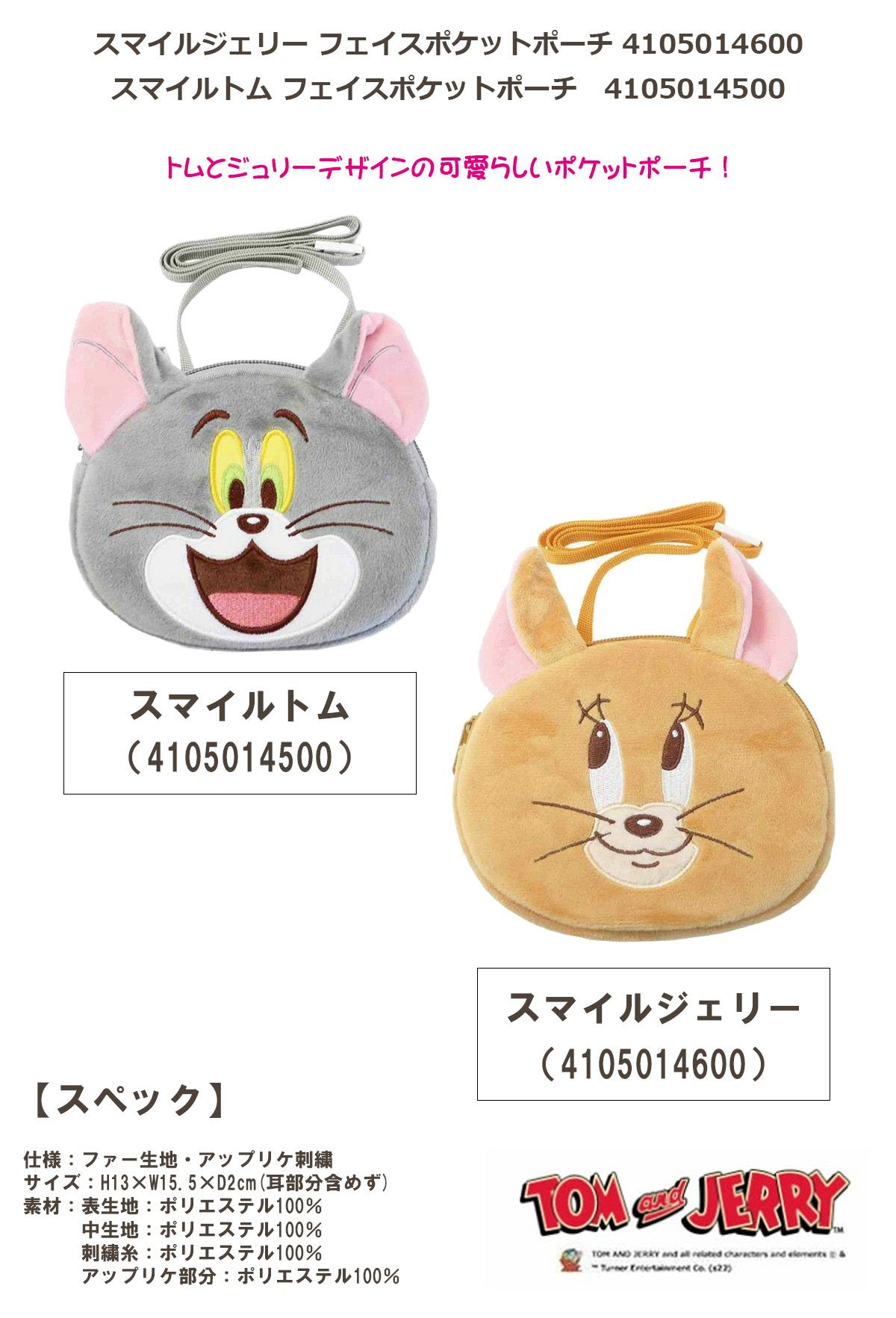 トムとジェリー スマイルジェリー・スマイルトム フェイスポケットポーチ
