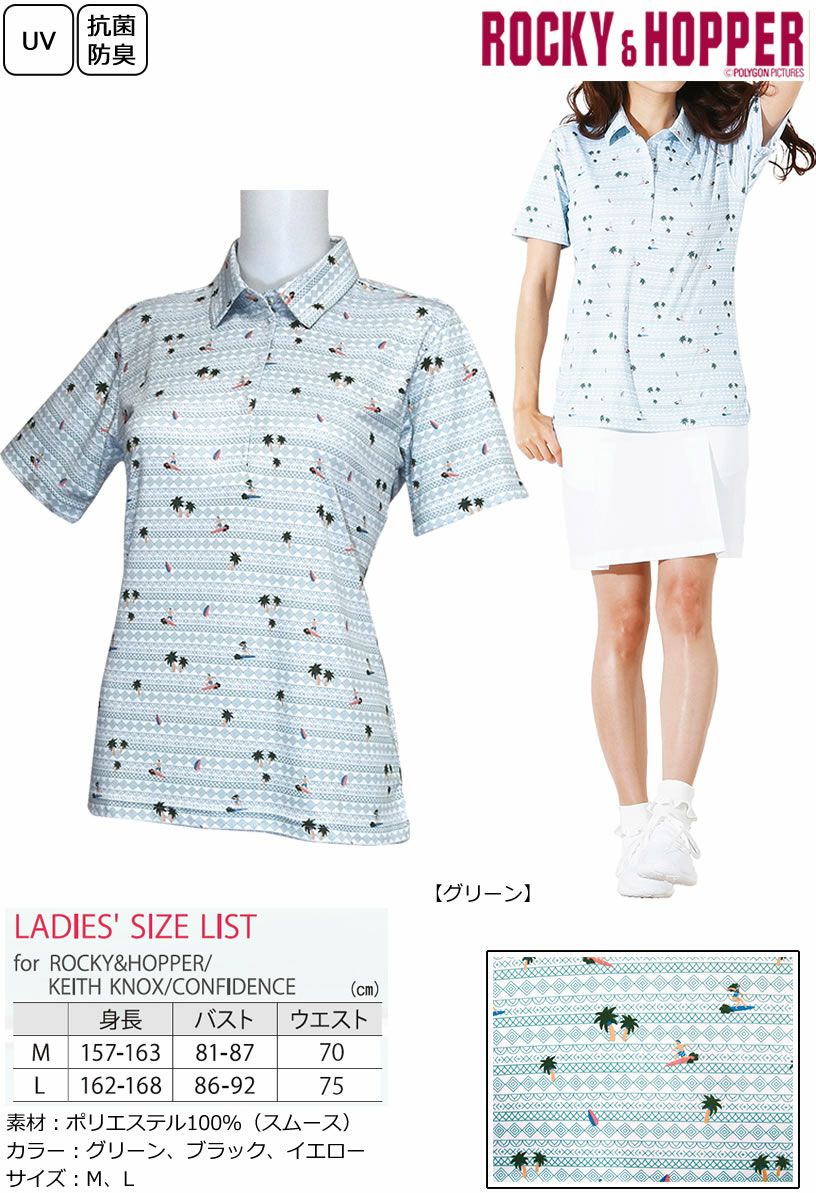 ロッキー&ホッパー サーフプリントがPOPなレディース半袖台襟シャツ RH-1755SL 【IR】