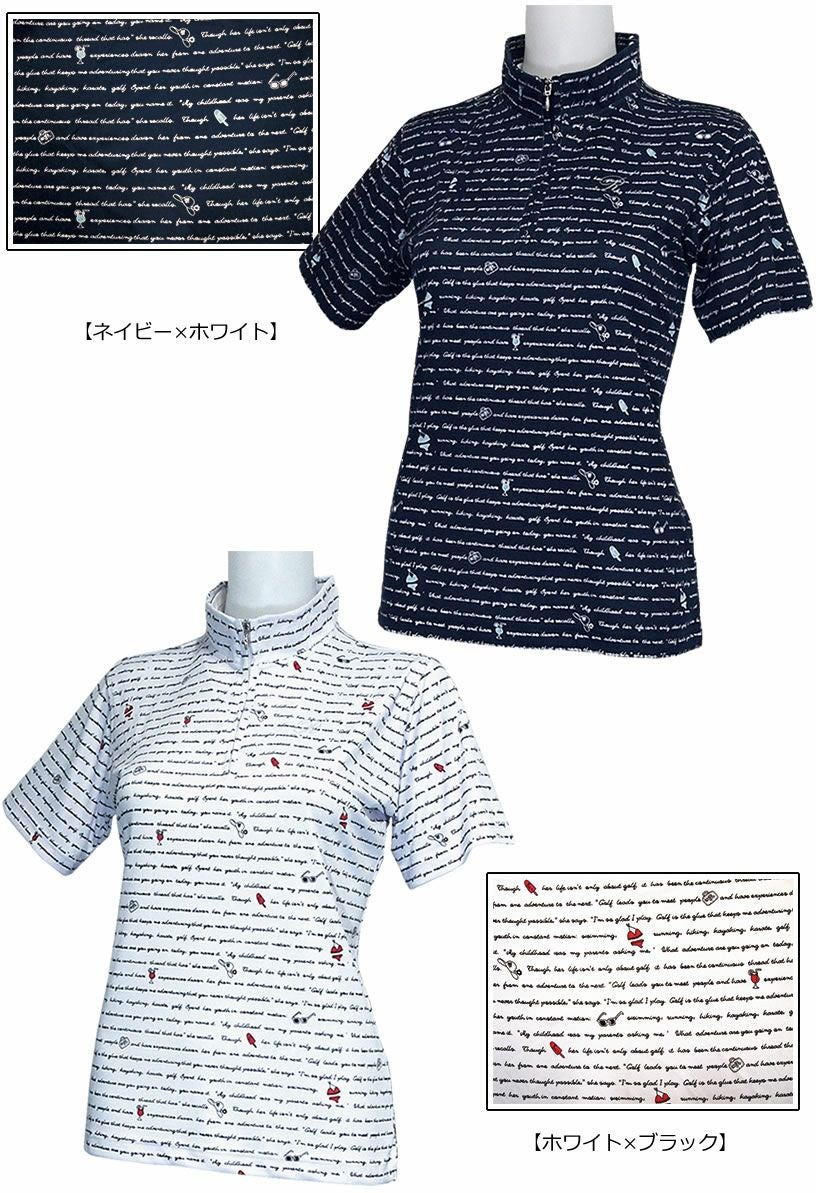 ロッキー&ホッパー カフェ風ゴシック文字柄 レディース 半袖ZIPハイネックシャツ RH-1756SL 【IR】