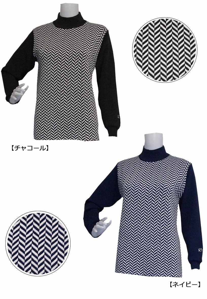 ロッキー&ホッパー トラッドな印象で上品なデザインのヘリンボーン柄ハイネックセーター 【IR】