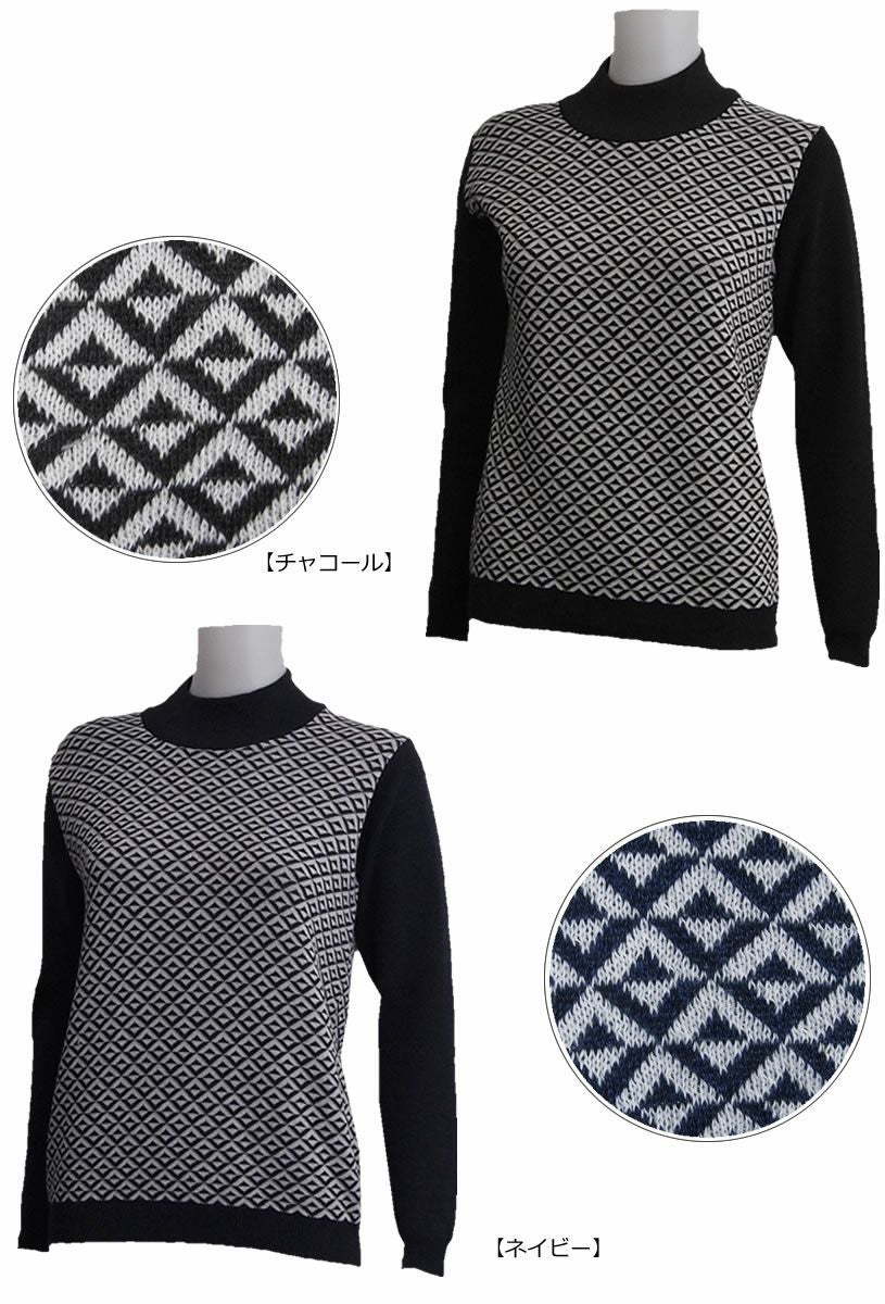 ロッキー&ホッパー ター バイカラーのトライアングル柄 レディース ハイネックセーター 【IR】