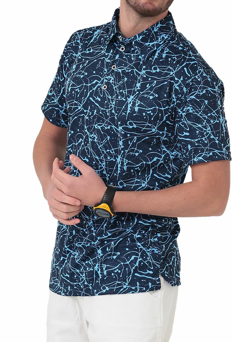 FOUNDERS CLUB ファウンダースクラブ スプラッシュプリント柄 メンズ半袖台襟シャツ FC-4344S
