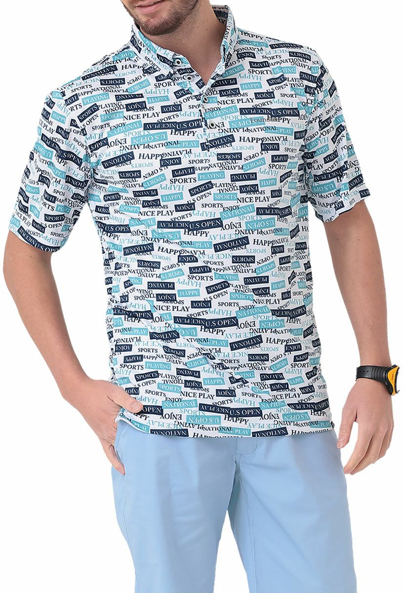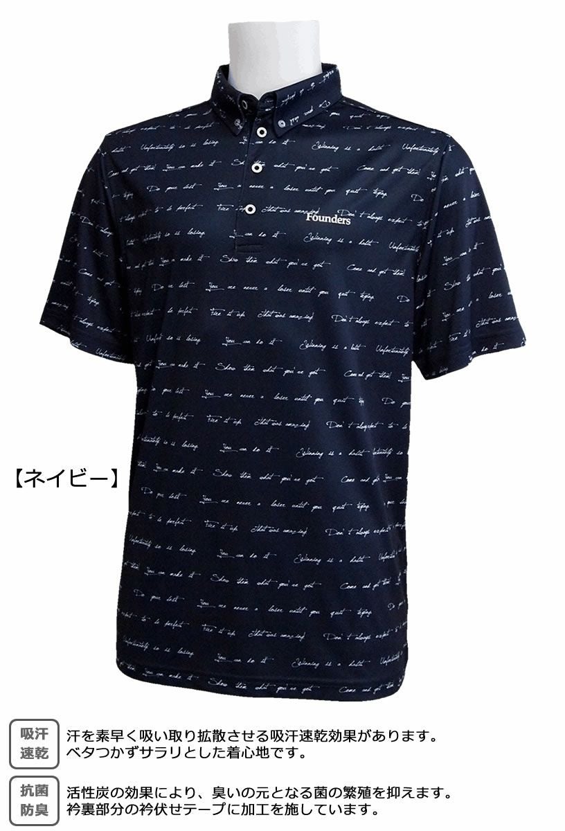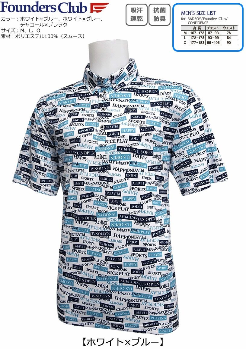 FOUNDERS CLUB ファウンダースクラブ タイポグラフィー柄 メンズ半袖台襟シャツ FC-4352S