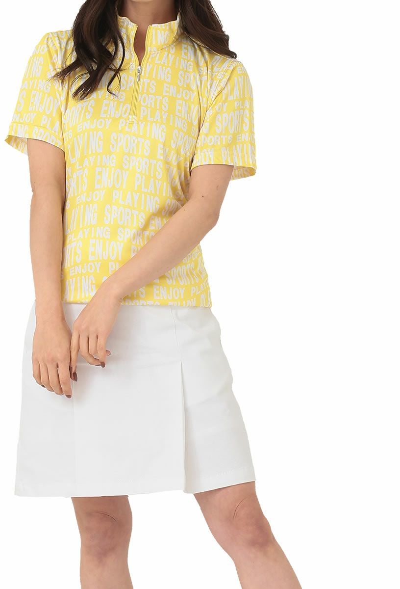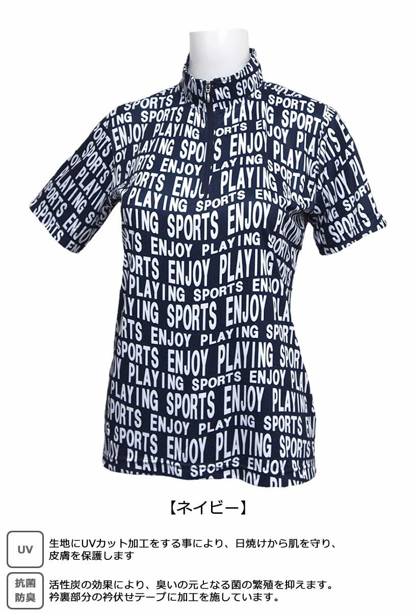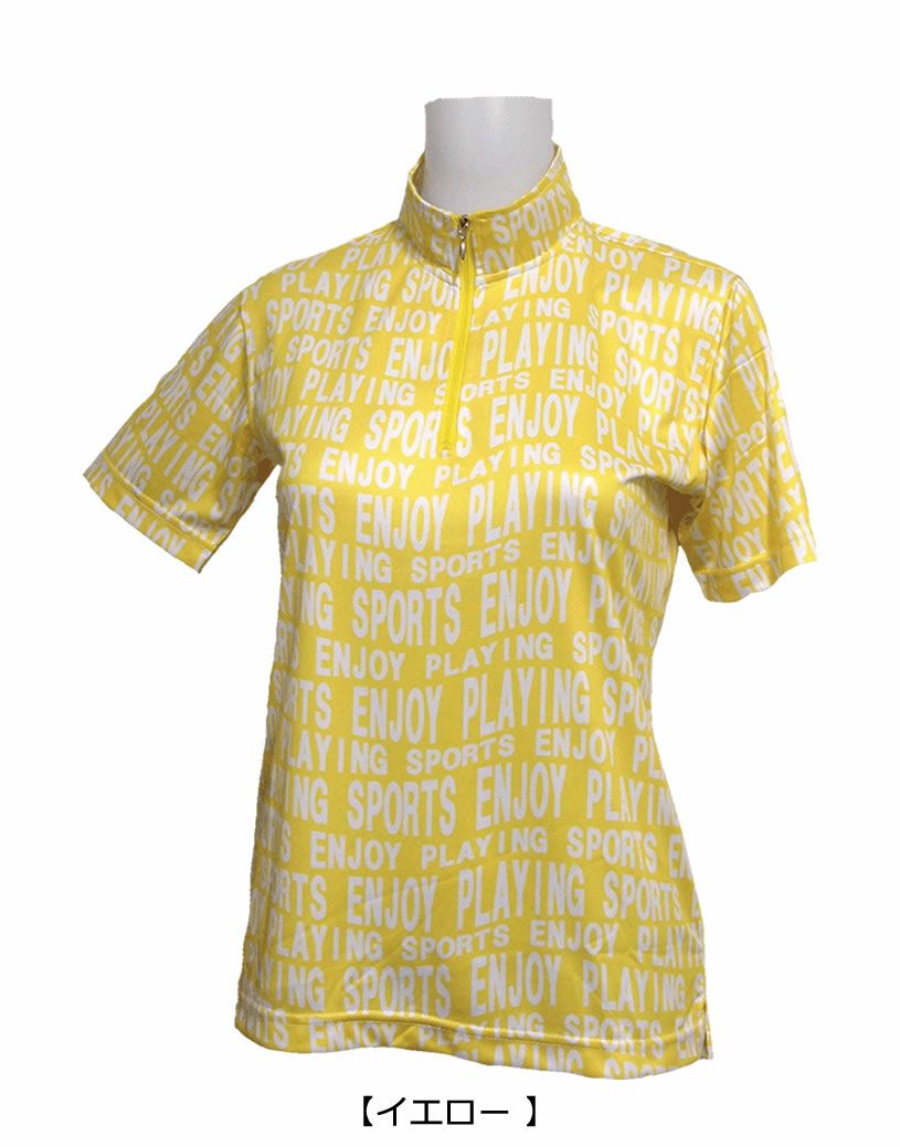 ROCKY&HOPPER ロッキー&ホッパー 波打つロゴボーダー柄 レディース半袖ZIPハイネックシャツ RH-1777S