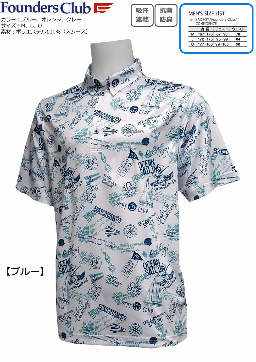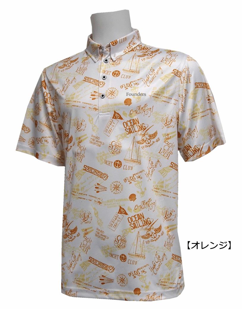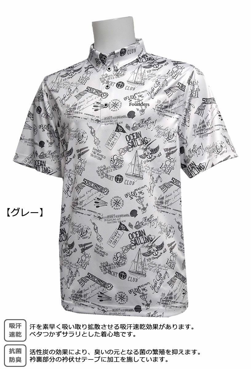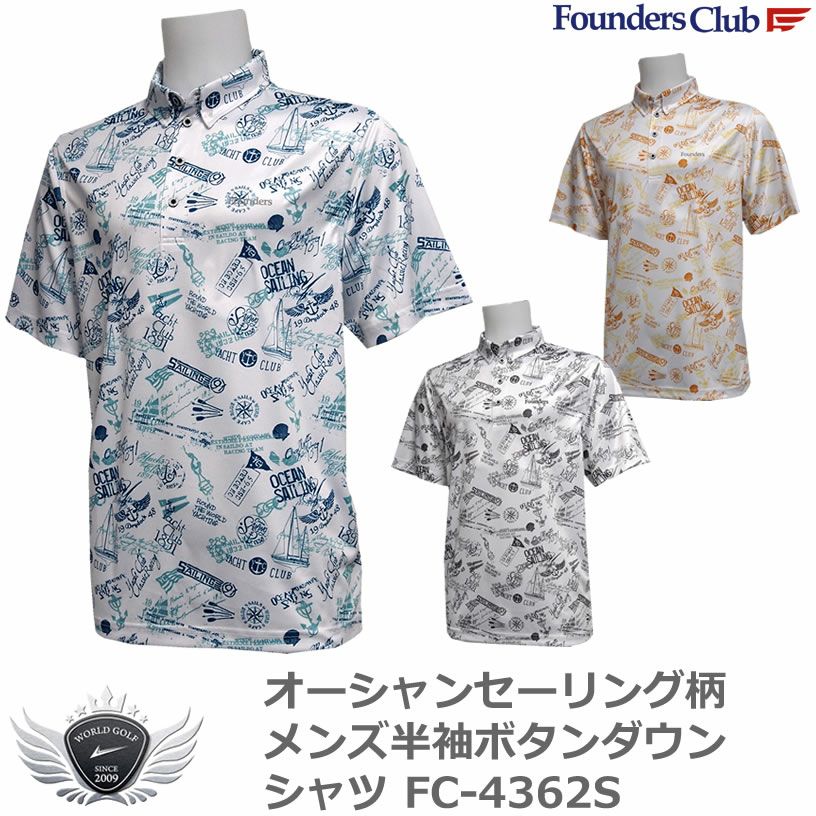 FOUNDERS CLUB ファウンダースクラブ オーシャンセーリング柄 メンズ半袖ボタンダウンシャツ FC-4362S