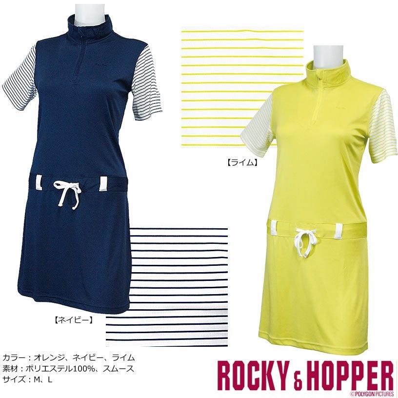 ロッキー&ホッパー レトロカラーとハイネック 半袖 ZIP ハイネック ワンピース 【IR】