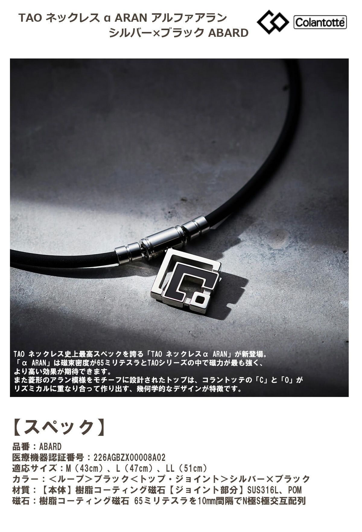 Colantotte コラントッテ TAO ネックレス α ARAN アルファアラン シルバー×ブラック ABARD