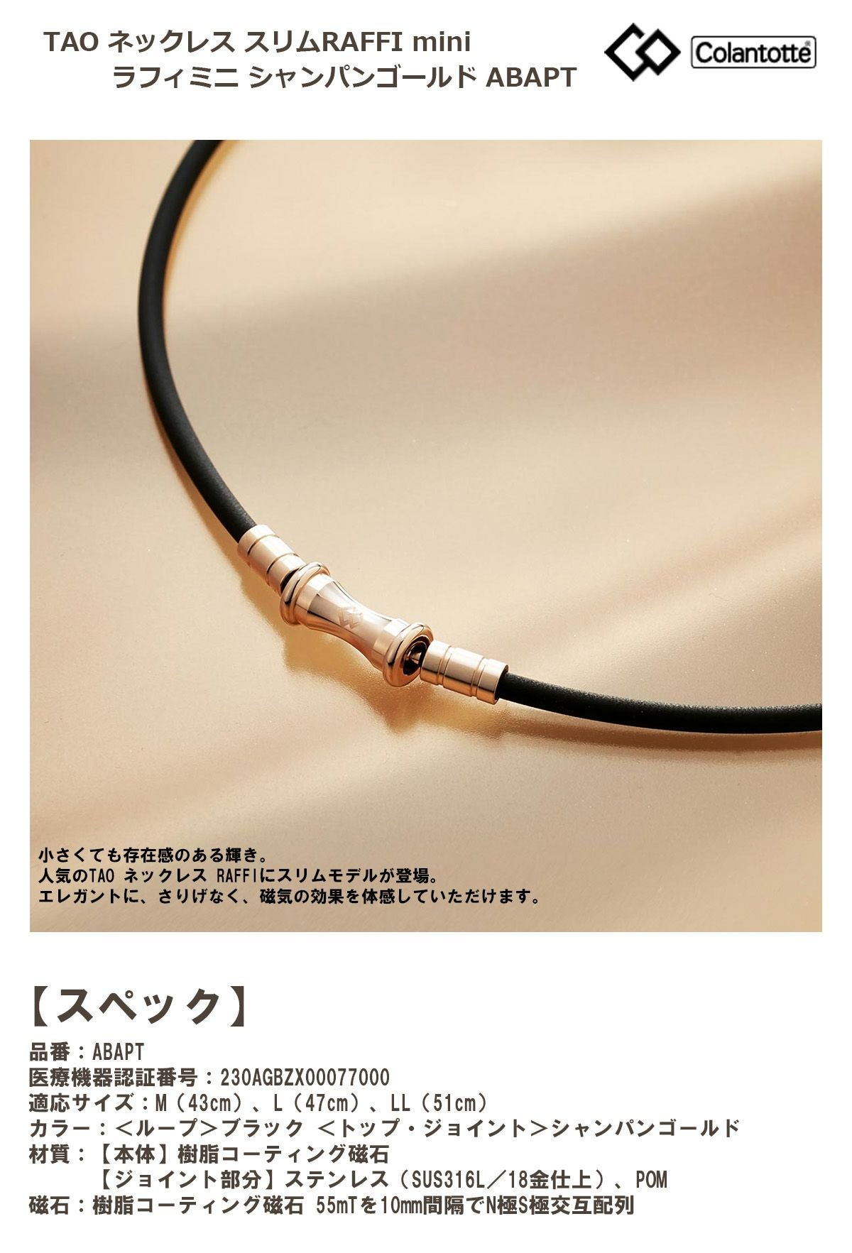 Colantotte コラントッテ TAO ネックレス スリムRAFFI mini ラフィミニ シャンパンゴールド ABAPT
