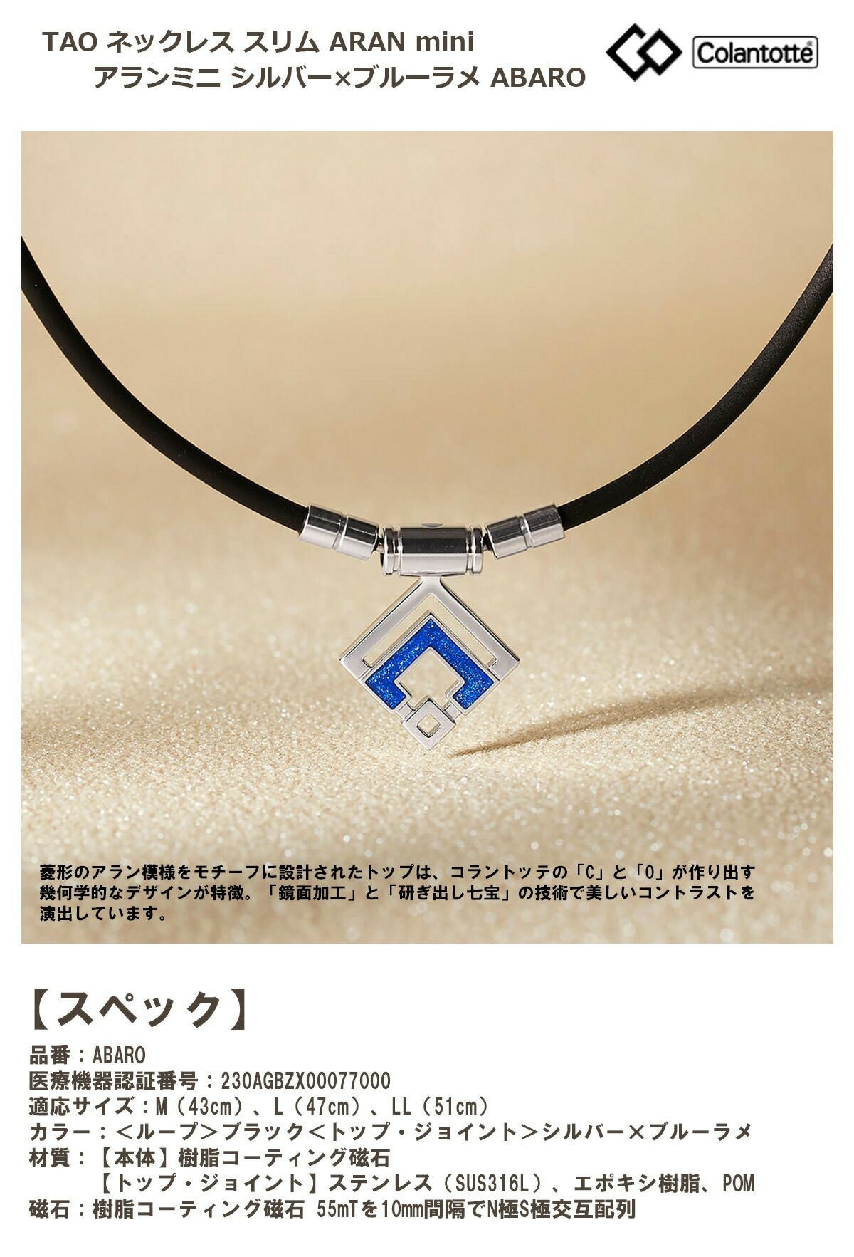 Colantotte コラントッテ TAO ネックレス スリム ARAN mini アランミニ シルバー×ブルーラメ ABARO