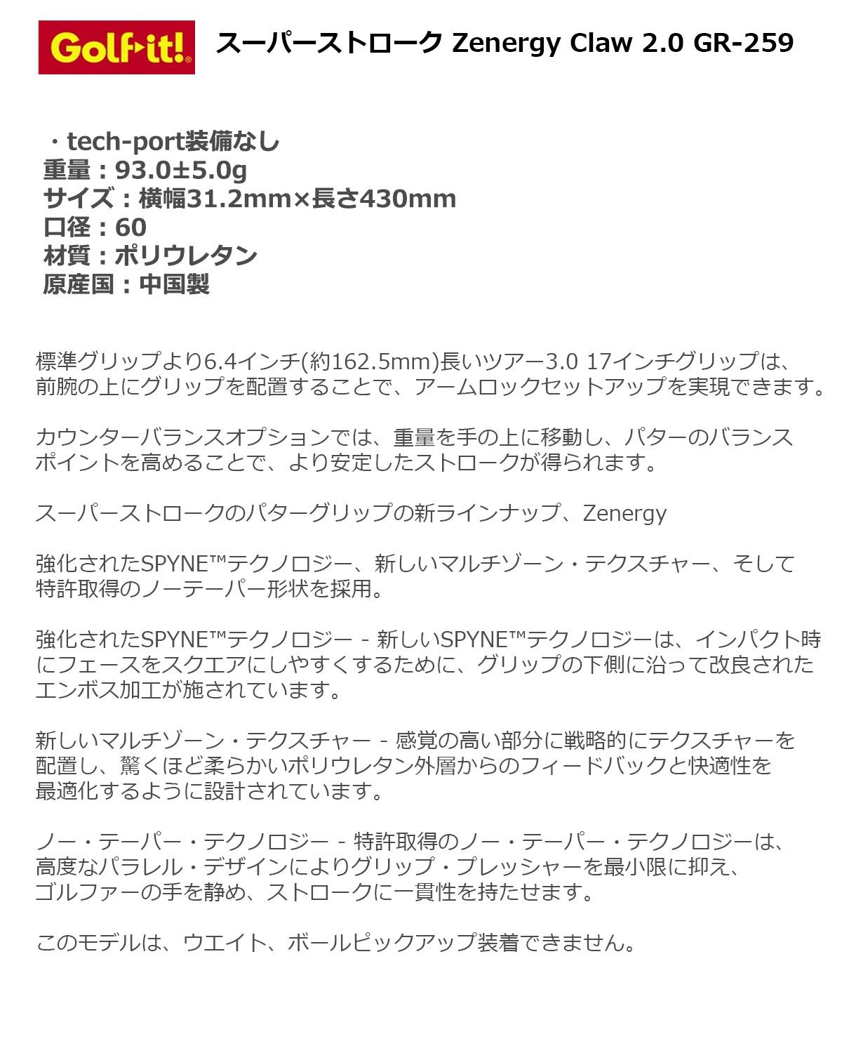ライ ト スーパーストローク Zenergy Claw 1.0 GR-258 【IR】