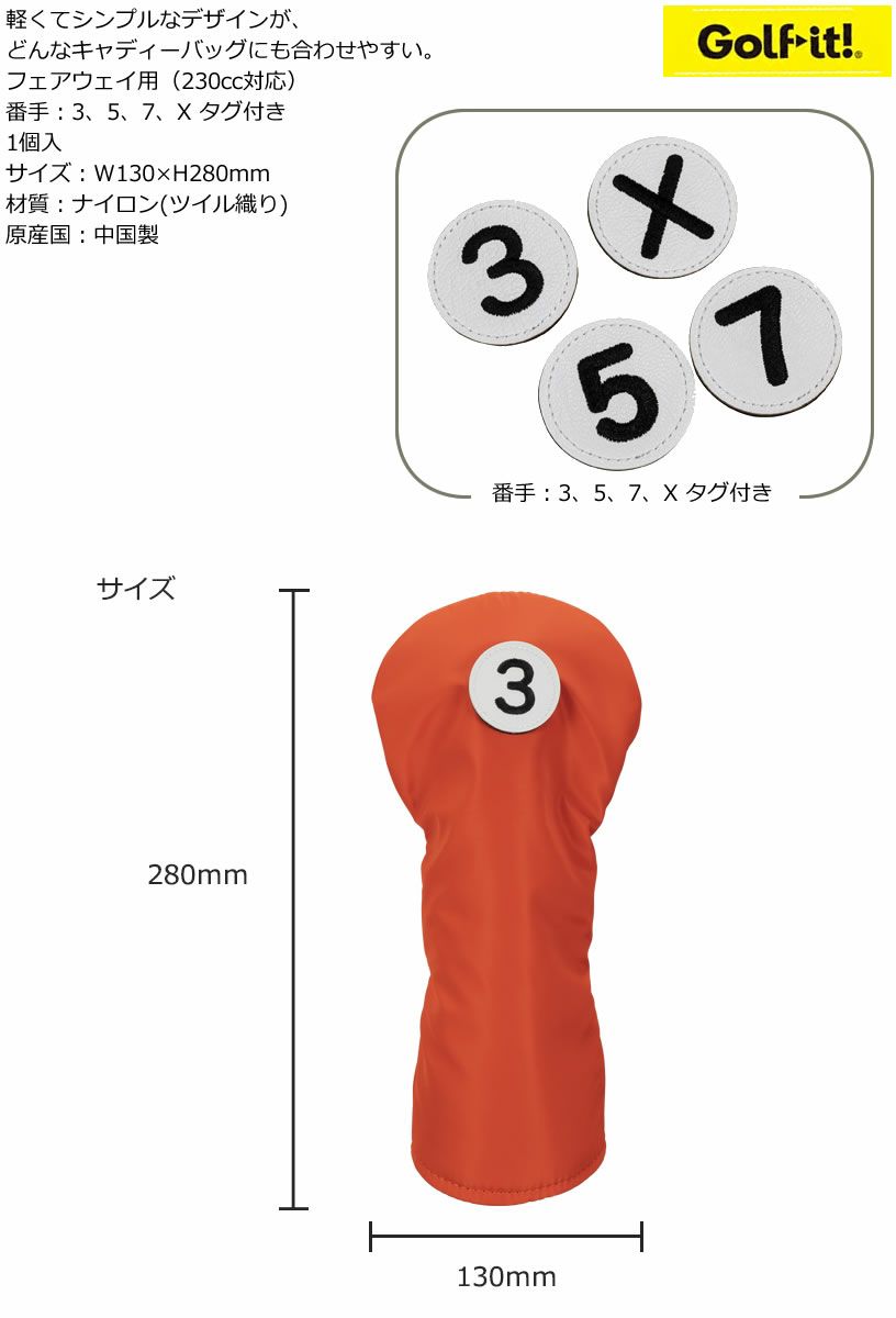 無地でオーソドックスなフェアウェイウッド用ヘッドカバー!