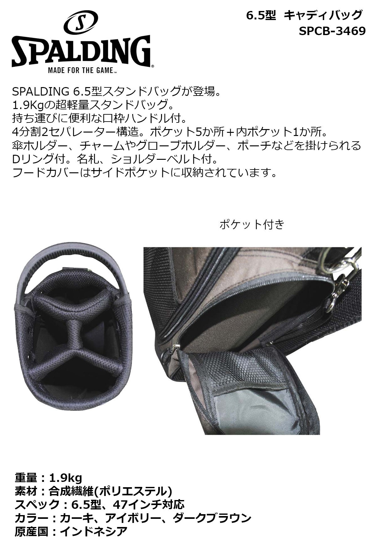 スポルディング 6.5型 キャディバッグ SPCB-3469 【IR】