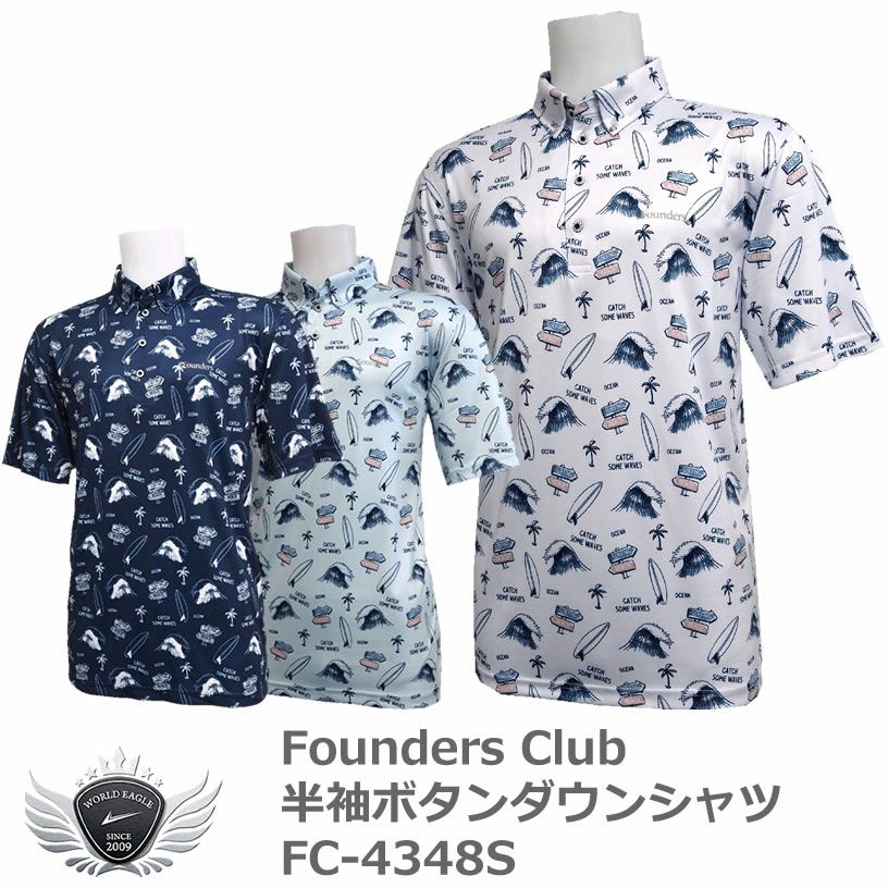 ファウンダースクラブ 存在感抜群英字プリント柄半袖ボタンダウンシャツ FC-4348S