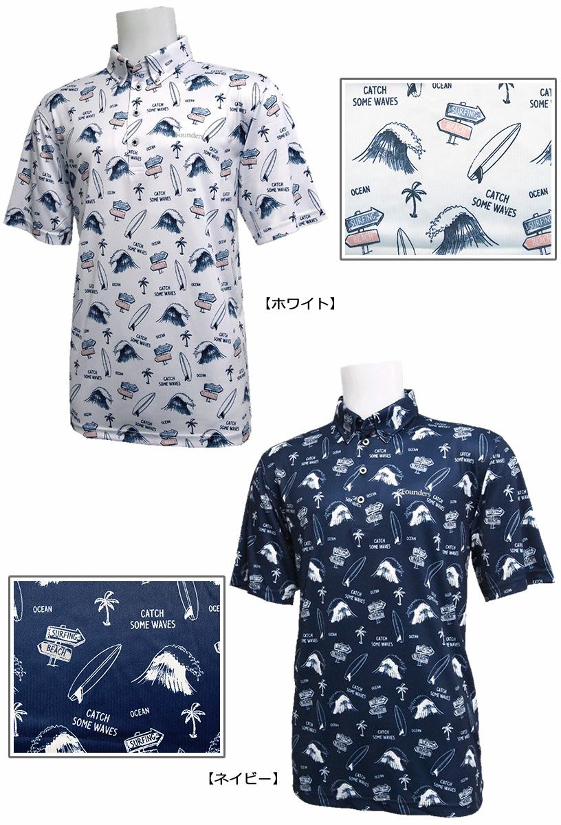ファウンダースクラブ ポップなヨットのマリン柄半袖ボタンダウンシャツ FC-4347S 【IR】